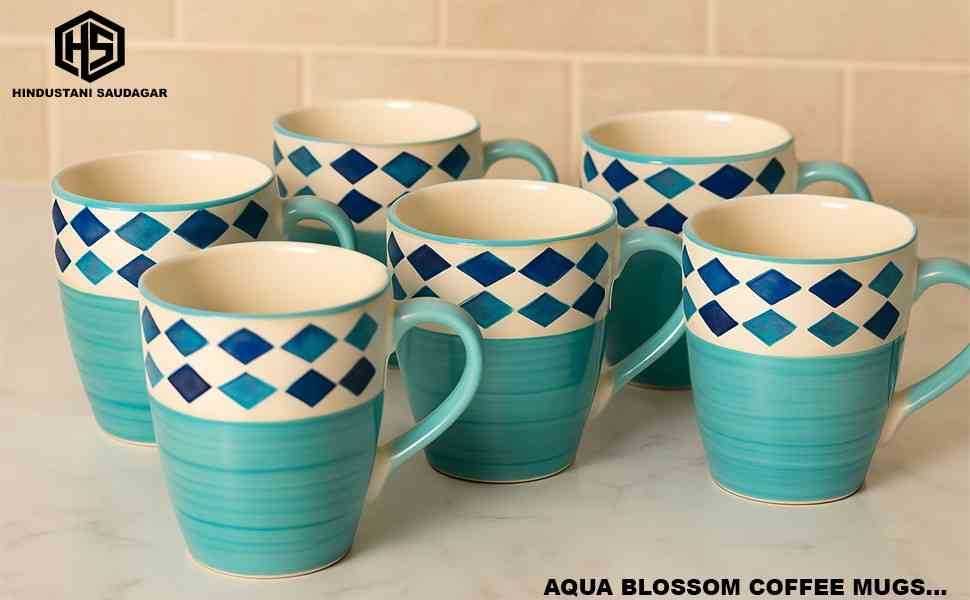 The Aqua Blossom Coffee Mug Set (275 ml each) is a must-have for modern homes and offices, blending elegance with functionality. Featuring a striking glossy green exterior and a smooth, glossy white interior, these mugs add sophistication to any setting. Designed for comfort, the heat-insulated handle ensures a secure grip without getting hot, while the thoughtful hook point holds tea bags effortlessly. Durable, easy to clean, and both dishwasher- and microwave-safe, they are perfect for coffee, tea, hot chocolate, and more. Ideal for everyday use or gifting on special occasions, these mug bring warmth and charm to every sip. Inspired by our journeys across India, hindustani saudagar celebrates artistry and heritage, bringing handcrafted treasures to your home.