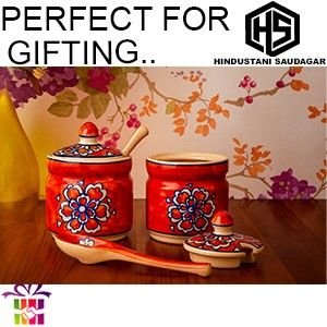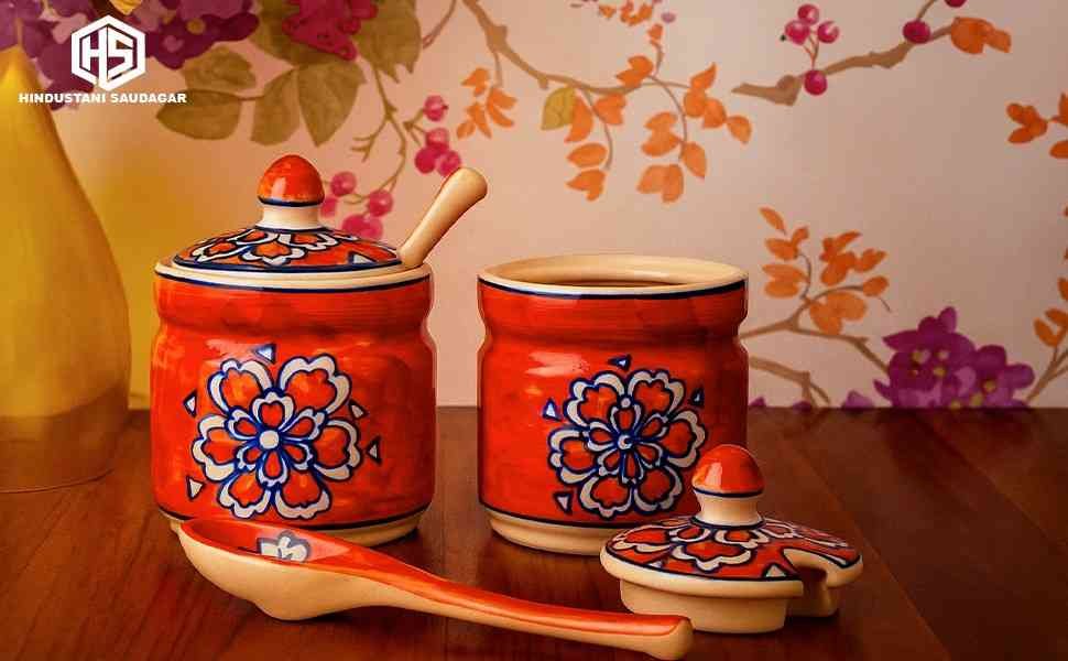 Whether for housewarmings, Diwali, weddings, or festive returns, this ceramic jar set makes a thoughtful and elegant gift that combines traditional beauty with everyday practicality.