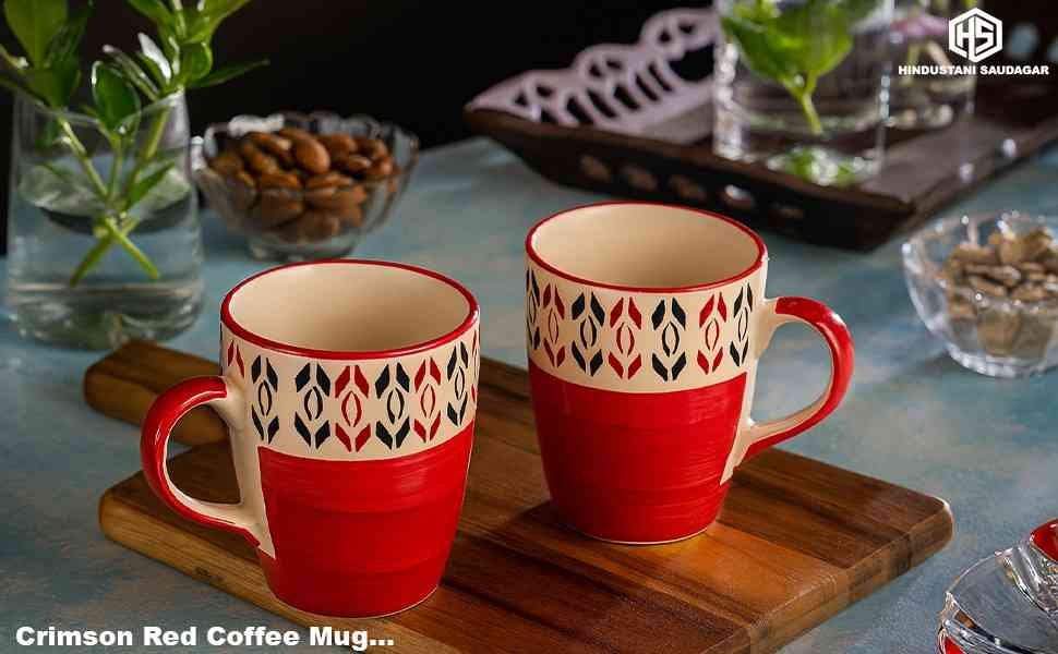 The Crimson Red Coffee Mug Set (275 ml each) is a must-have for modern homes and offices, blending elegance with functionality. Featuring a striking crimson red exterior and a smooth, glossy white interior, these mugs add sophistication to any setting. Designed for comfort, the heat-insulated handle ensures a secure grip without getting hot, while the thoughtful hook point holds tea bags effortlessly. Durable, easy to clean, and both dishwasher- and microwave-safe, they are perfect for coffee, tea, hot chocolate, and more. Ideal for everyday use or gifting on special occasions, these mugs bring warmth and charm to every sip. Inspired by our journeys across India, hindustani saudagar celebrates artistry and heritage, bringing handcrafted treasures to your home.