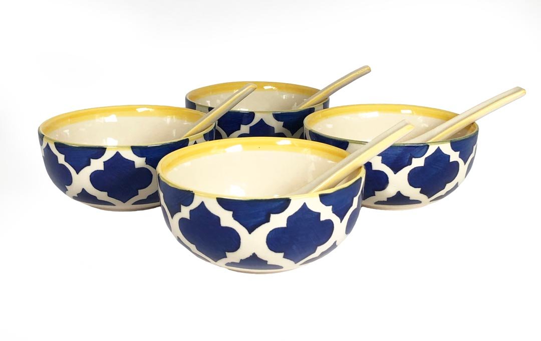 Be the first to review “HS Hindustani Saudagar Ceramic Handcrafted Bowls with Spoons 300 Ml , Set of 4 ( Blue & Yellow,Floral)”