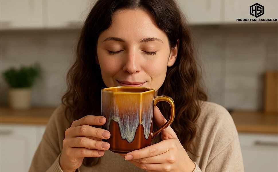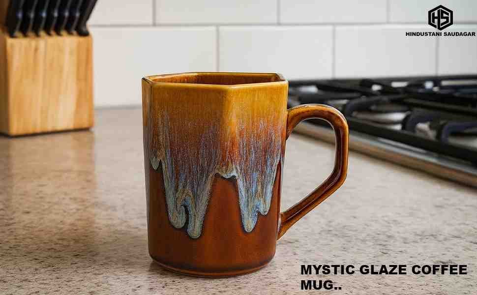 The Mystic Glaze Coffee Mug Set (400ml each) is a must-have for modern homes and offices, blending elegance with functionality. Featuring a striking Mystic Brown exterior and a smooth, glossy Light Brown interior, these mugs add sophistication to any setting. Designed for comfort, the heat-insulated handle ensures a secure grip without getting hot, while the thoughtful hook point holds tea bags effortlessly. Durable, easy to clean, and both dishwasher- and microwave-safe, they are perfect for coffee, tea, hot chocolate, and more. Ideal for everyday use or gifting on special occasions, these mug bring warmth and charm to every sip. Inspired by our journeys across India, hindustani saudagar celebrates artistry and heritage, bringing handcrafted treasures to your home.