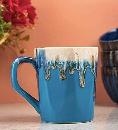 This handcrafted ceramic coffee mug from HS Hindustani Saudagar comes with a height of 10 cm, a rim diameter of 9 cm, and a total width of 12 cm including the handle. It has a generous capacity of approximately 400 ml, making it perfect for enjoying tea, coffee, or other beverages. The mug combines durability with artistic design, offering both practicality and elegance for daily use.