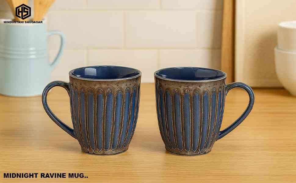 The Midnight Ravine Coffee Mug Set (350ml each) is a must-have for modern homes and offices, blending elegance with functionality. Featuring a striking glossy blue exterior and a smooth, glossy white interior, these mugs add sophistication to any setting. Designed for comfort, the heat-insulated handle ensures a secure grip without getting hot, while the thoughtful hook point holds tea bags effortlessly. Durable, easy to clean, and both dishwasher- and microwave-safe, they are perfect for coffee, tea, hot chocolate, and more. Ideal for everyday use or gifting on special occasions, these mugs bring warmth and charm to every sip. Inspired by our journeys across India, hindustani saudagar celebrates artistry and heritage, bringing handcrafted treasures to your home.