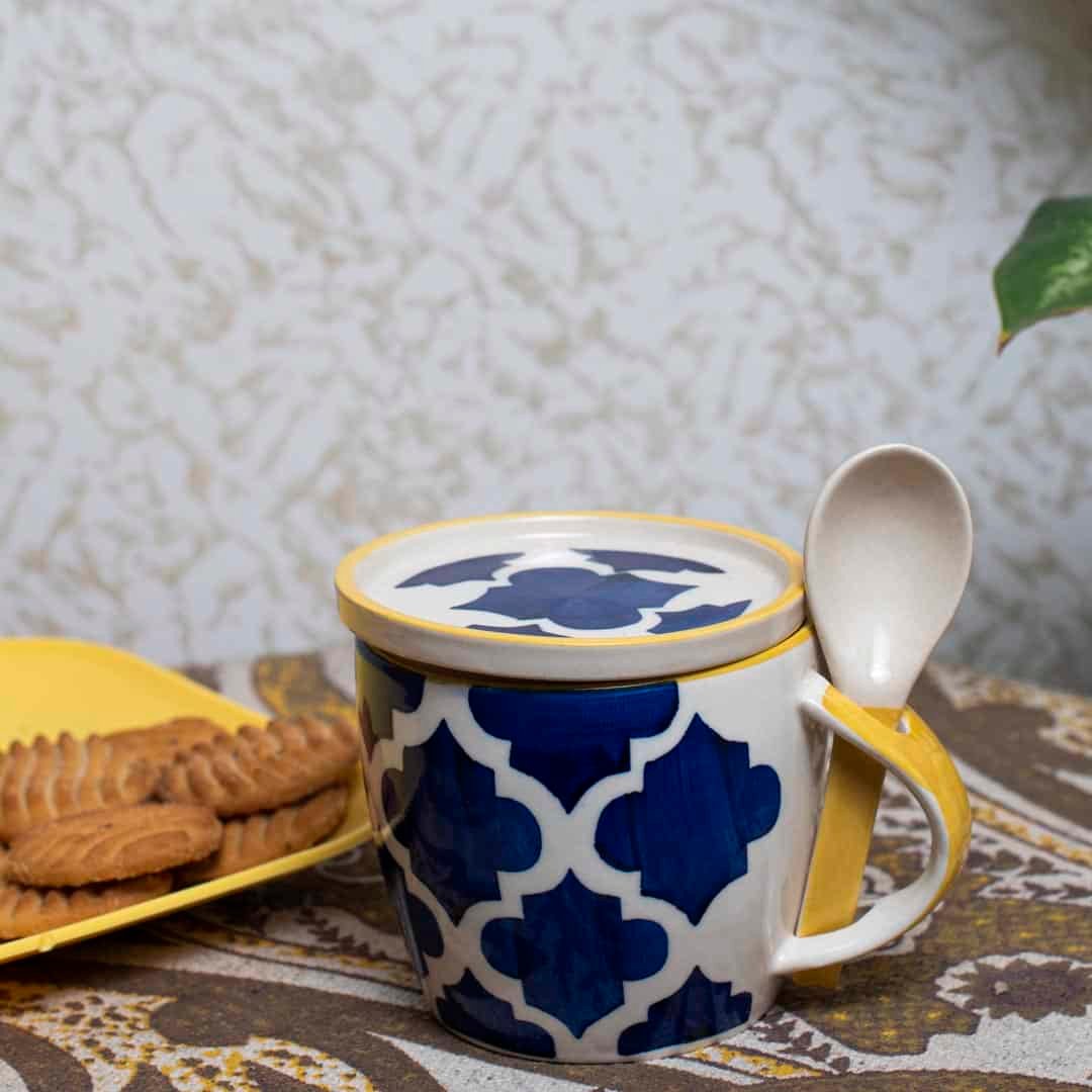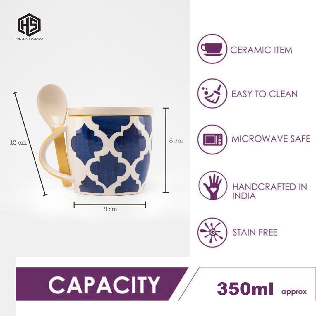 Be the first to review “HS HINDUSTANI SAUDAGAR Ceramic Handpainted Coffee Mug with Coaster and Spoon, Set of 1 , 350Ml (Blue & Yellow)”
