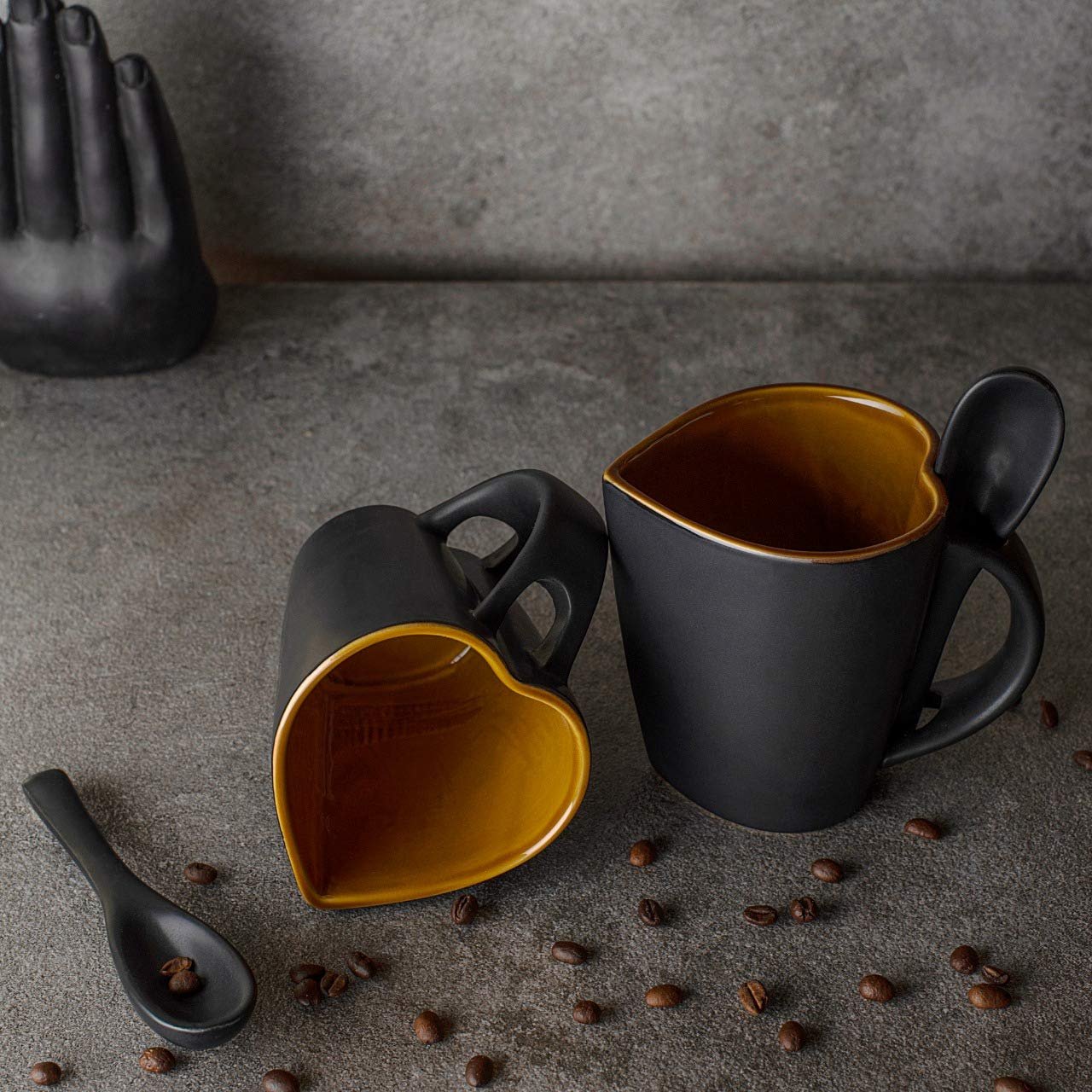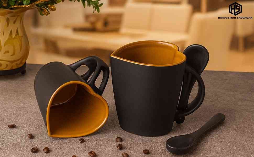 The Black Heart Coffee Mug Set (330 ml each) is a must-have for modern homes and offices, blending elegance with functionality. Featuring a striking Matt Black exterior and a smooth, glossy Brown interior, these mugs add sophistication to any setting. Designed for comfort, the heat-insulated handle ensures a secure grip without getting hot, while the thoughtful hook point holds tea bags effortlessly. Durable, easy to clean, and both dishwasher- and microwave-safe, they are perfect for coffee, tea, hot chocolate, and more. Ideal for everyday use or gifting on special occasions, these mug bring warmth and charm to every sip. Inspired by our journeys across India, hindustani saudagar celebrates artistry and heritage, bringing handcrafted treasures to your home.
