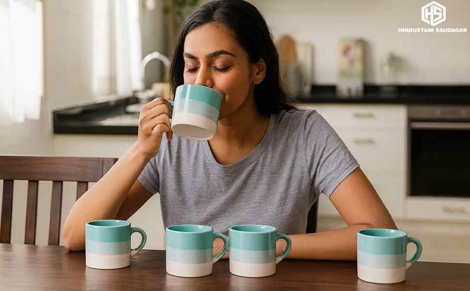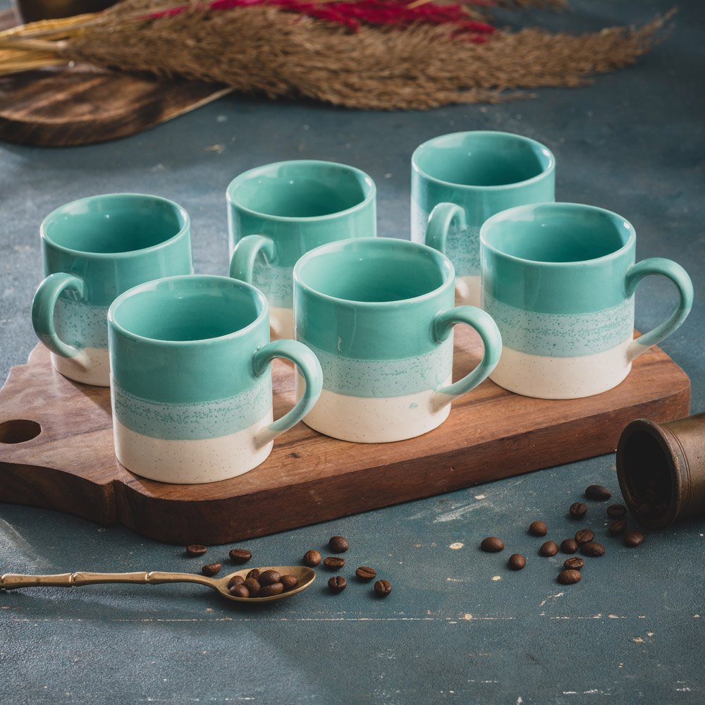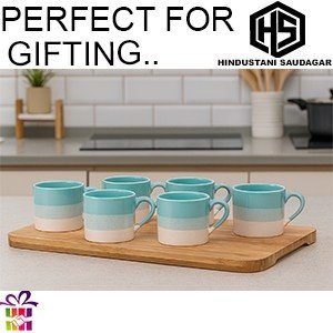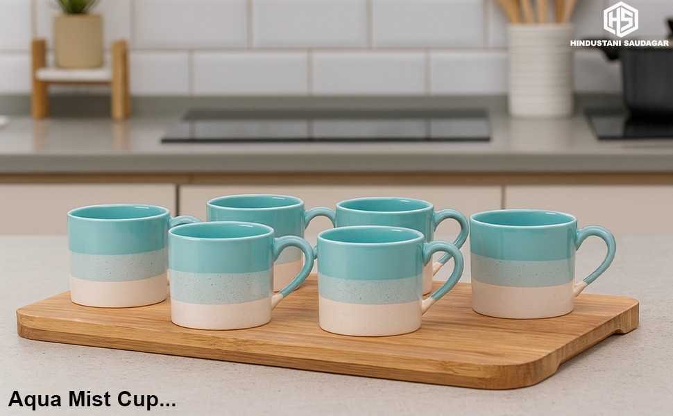 The Aqua Mist Coffee Cup Set (190ml each) is a must-have for modern homes and offices, blending elegance with functionality. Featuring a striking a Seagreen Color and a smooth, glossy Green interior, these cups add sophistication to any setting. Designed for comfort, the heat-insulated handle ensures a secure grip without getting hot, while the thoughtful hook point holds tea bags effortlessly. Durable, easy to clean, and both dishwasher- and microwave-safe, they are perfect for coffee, tea, hot chocolate, and more. Ideal for everyday use or gifting on special occasions, these cup bring warmth and charm to every sip. Inspired by our journeys across India, hindustani saudagar celebrates artistry and heritage, bringing handcrafted treasures to your home.